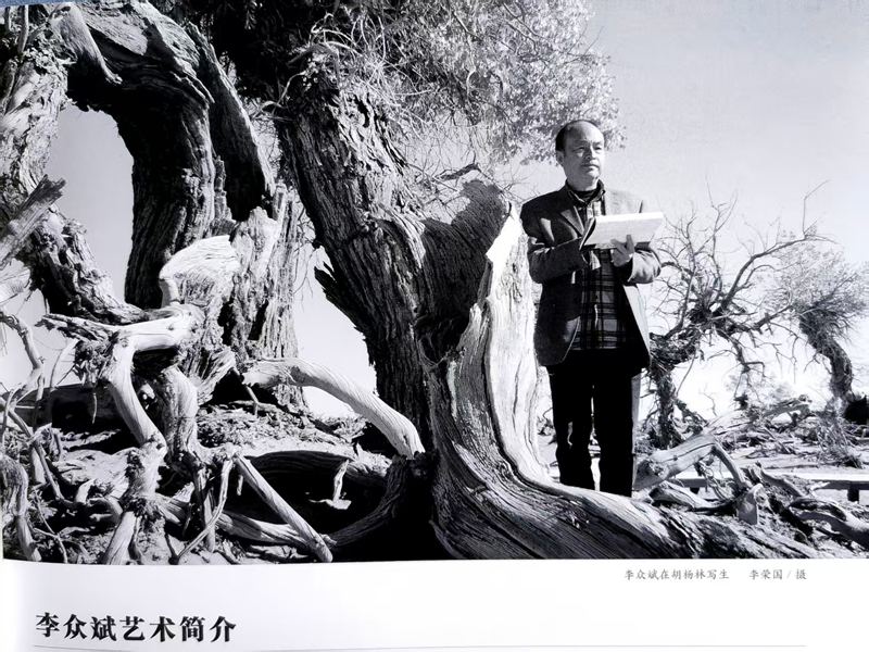 骊山书画研究院院长胡成海先生细品画册后由衷感叹:“这本集子凝聚着高原军民的神韵与山川风貌,尽显西北地域特色与史诗精神,尤其是那本速写集,六十余年的现场写生佳作,功底深厚,值得潜心研习。”军旅摄影师、资深军医雷补团乡友的分享则满含温情,他忆及十余年前在额济纳旗与李众斌偶遇的三日:“先生面对胡杨林物我两忘,速写本上满是虬枝盘错的生命张力,如今画册中那些不朽胡杨,正是他扎根生活、笔耕不辍的最好见证。大家可以从这两本画册里看到中国摄协会员李荣国同道当年为李老师在胡杨林专心写生时抓拍的照片,就是很好的例证。”