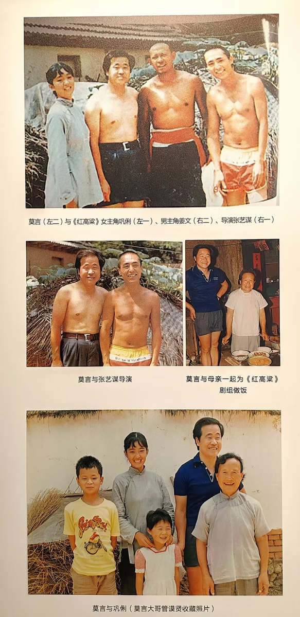 莫言师兄含笑颔首),缓缓忆起当年:这张照片,就是在文学艺术馆旁的这个村落里拍下的。那是1987年8月,田间高粱尚是一片青绿,我满心疑惑问张艺谋,高粱未红,何以拍出《红高粱》的炽烈意境?张艺谋咧嘴一笑答我:你有所不知,高粱熟透红透,秸秆便硬,风过难有摇曳灵动;如今青穗满田,后期添上滤镜,便是燎原火海般的壮阔。拍摄时,巨型风扇吹动千亩高粱,青浪翻涌如碧海扬波,那份鲜活灵动,唯有此时方能得见。