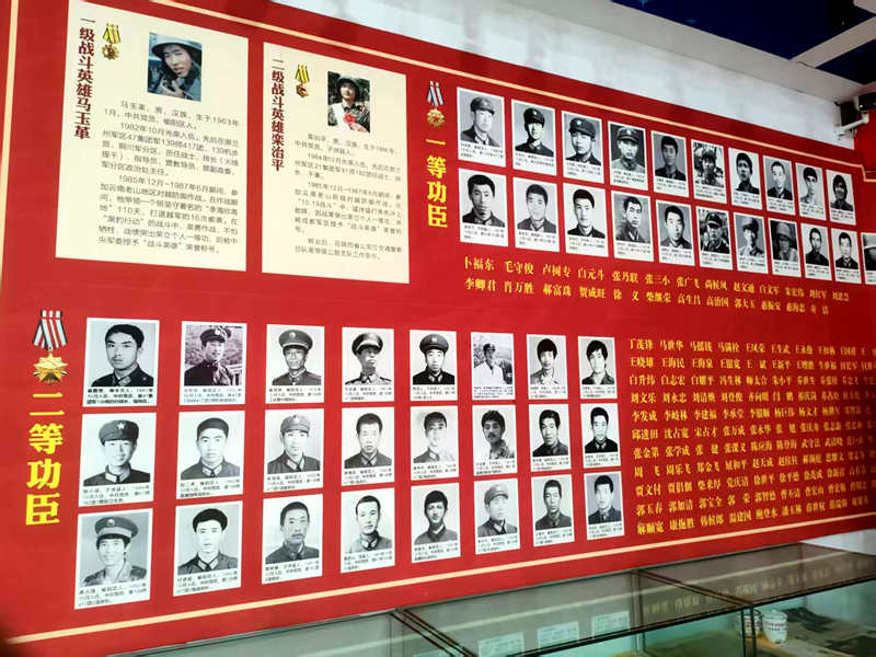 整个展馆布局系统完整、图文史料丰富,馆藏英雄照片500余张、实物文物200余件、文献手稿190份,还复原了作战地图、老兵日记、战地遗书、猫耳洞等真实场景。展厅内,祖国雄鸡版图两侧,“热血铸军魂,青春献南疆”的红色竖标庄严醒目,“中越战争中闪耀的将星”专题展区亦徐徐展开。