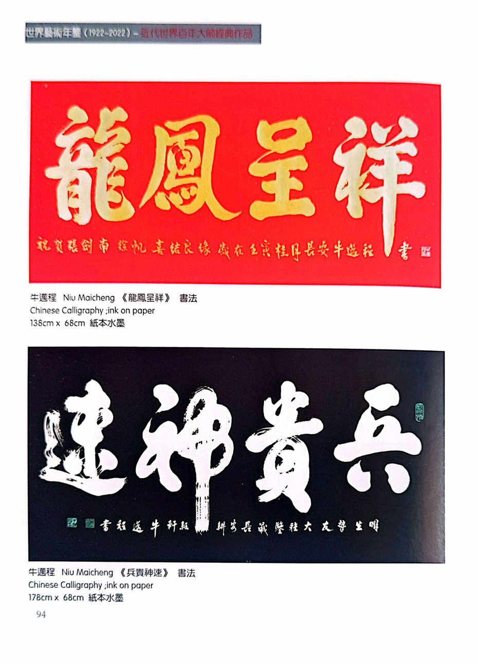 牛迈程先生荣登《世界藝術年鑒(1922-2022)》
