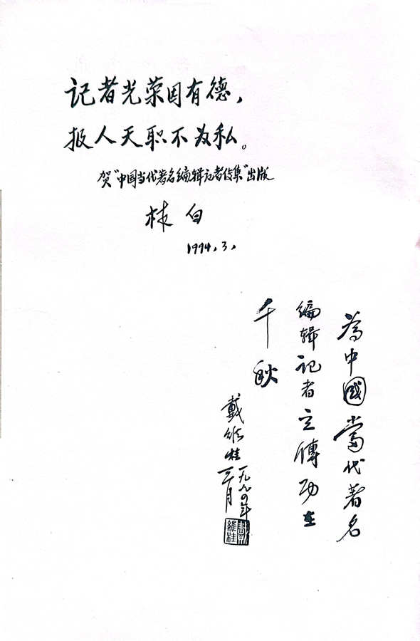 牛迈程先生荣入《中国当代著名编辑记者传集》