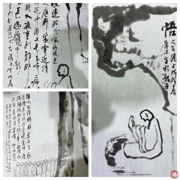 张先《春思》词写风雨交加轻冷夜,醉花酒,叹旧病,重门静,披明月、幻倩影。 吾品之遂以《暮春禅境》而写风和春暖艳阳天,柳丝漾,蝶闲逛,池游鲤,水鸳唱,人无恙。 乔木君以梵像禅画,吾故在下半段以苇庐作清寺,悟道在梵乡而和韵。
