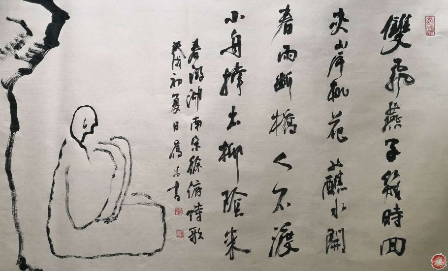 [题记]乔木先生禅画宋代徐俯《春游湖》诗: 双飞燕子几时回, 夹岸桃花蘸水开。 春雨断桥人不度, 小舟撑出柳阴来。
