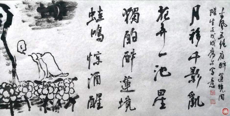古风五绝-夜醉莲境 周阳生 月移千影乱, 花弄一池星。 独酌醉莲境, 蛙鸣惊酒醒。