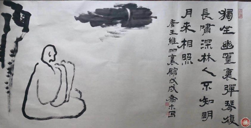 王维全诗虽然平淡无奇,但却超凡脱俗,信手拈来,情景交融。诗中月夜幽林,弹琴长啸,抒发了诗人的高雅之情。乔木禅画诗境,梵人回向。吾弹月琴,禅诗作和。