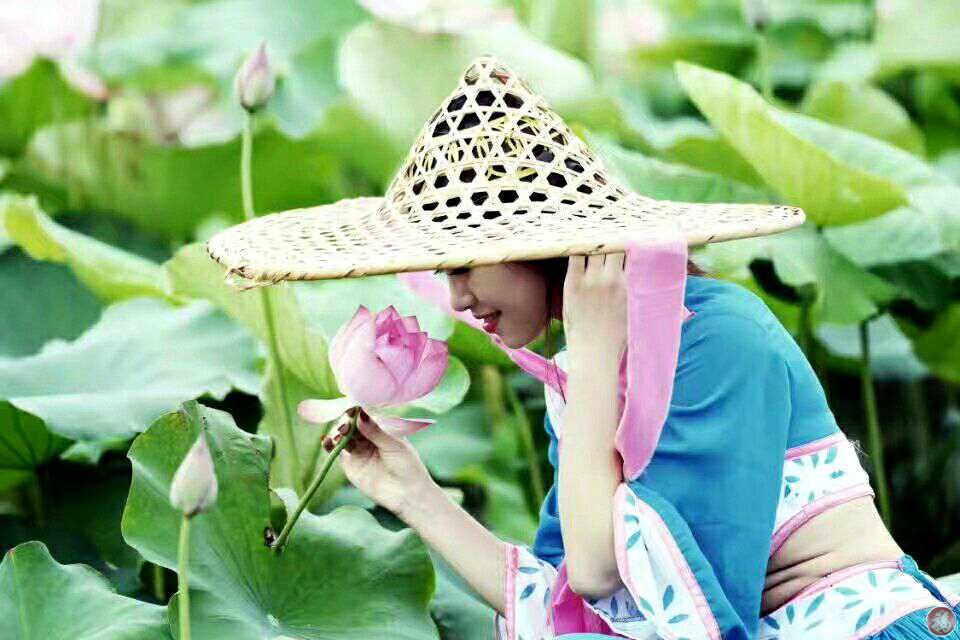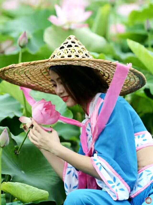 淑女采荷蛙卧莲, 仙姑荡桨鹭惊翩。 蜻蜓点水戏蝉蝶, 布谷鸣晨辞月弦。