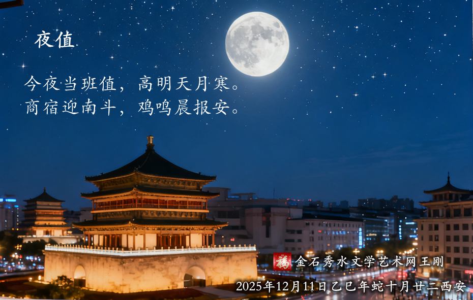 此诗可贵处在于:在二十字的古典框架中,既保持“鸡鸣报晓”的农耕文明记忆,又注入现代职业者的生命体验。千古不变的银辉与今日值守者的目光相遇,完成了一场跨越时空的宁静对话。