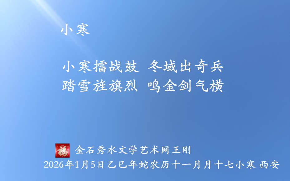 3.全诗总评: 此五言绝句以兵家意象咏小寒,立意新颖脱俗,一扫冬景诗词常见的冷寂之态。格律严谨,用词凝练精准,于西安小寒之日落笔,既贴合节气时令与地域背景,又以雄浑豪迈的笔力,勾勒出一幅凛冬行军的磅礴画卷,诗发盛唐边塞诗的沉雄之风。