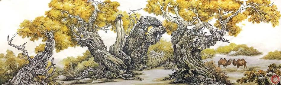 【金石秀水】赏王三县先生〈大漠胡杨〉画作