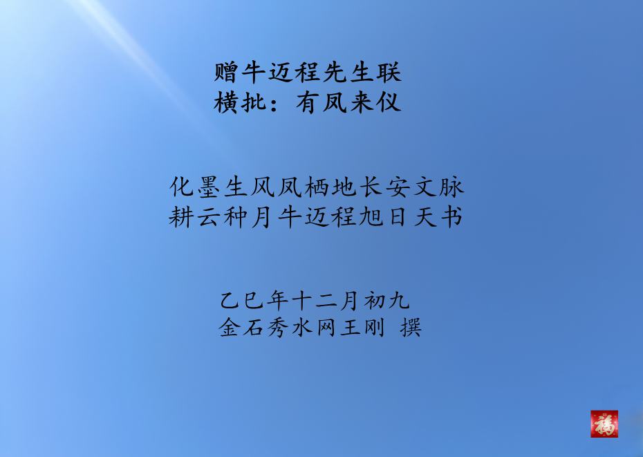 【金石秀水】赠牛迈程先生联