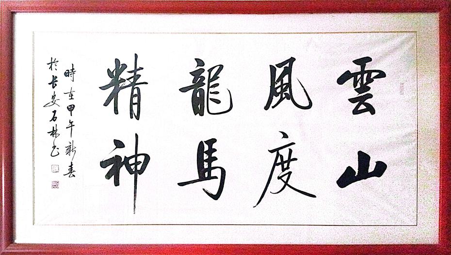 回溯2020年,石林先生曾赠“雲山风度,龙马精神”书法一幅,我将其悬于书房壁上,感念于心,作诗记之: