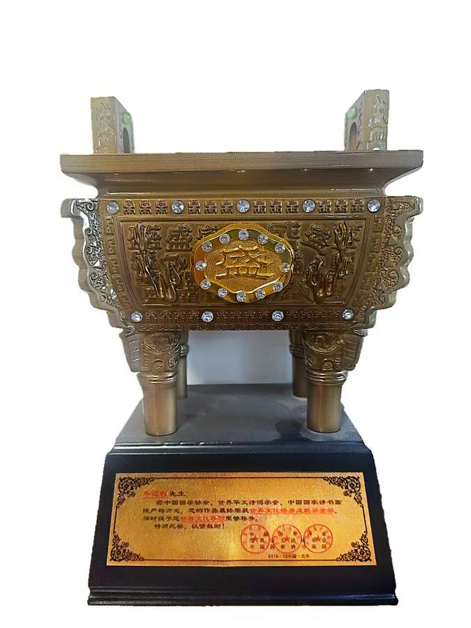古鼎承誉,镌刻牛迈程先生艺术耕耘之绩,彰显文化传承之责,象征其事业与作品如鼎般稳固传承、繁荣不衰。