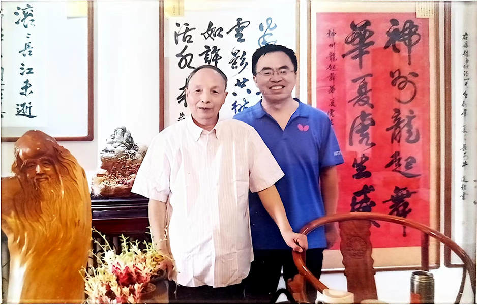 陕煤集团榆北煤业公司群工部部长侯买恒(右)来访牛迈程书法艺术工作室 左为牛迈程