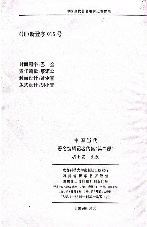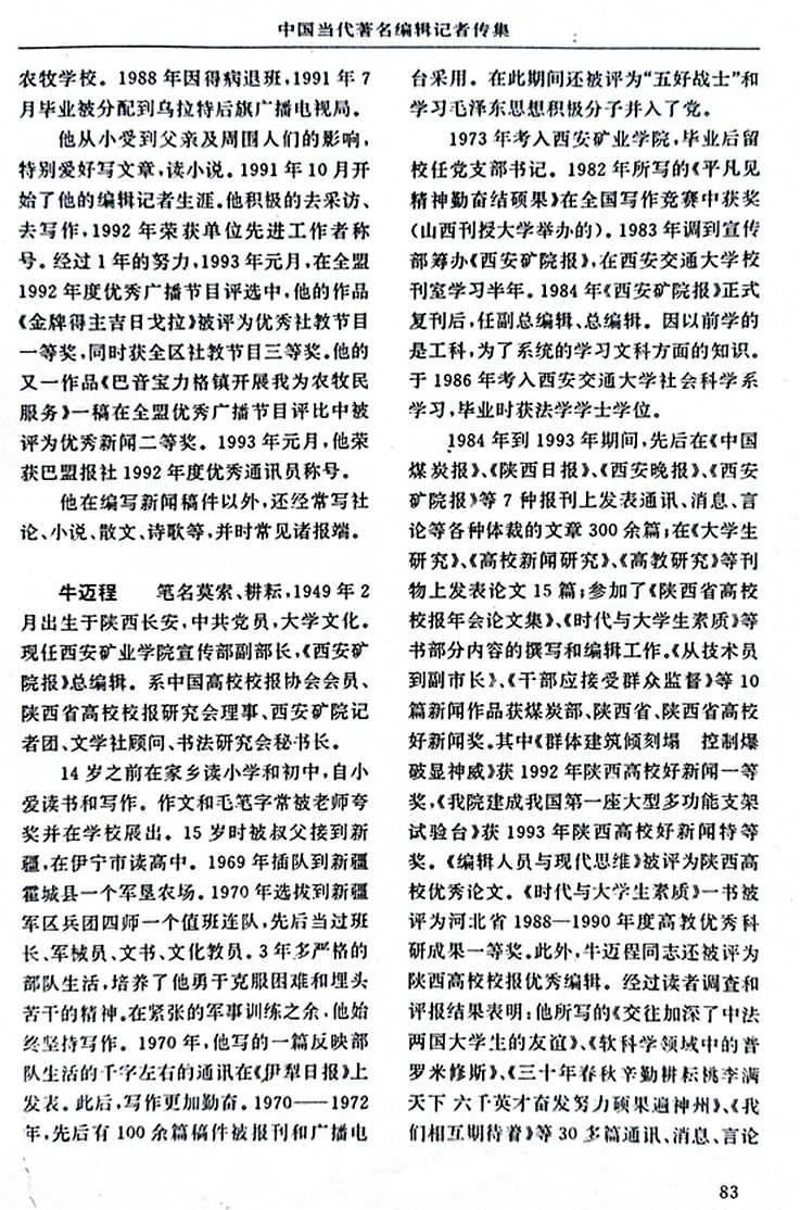 牛迈程先生荣入《中国当代著名编辑记者传集》